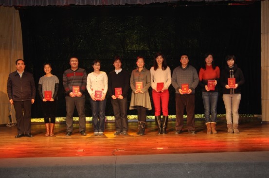 表彰大会暨新年联欢会首先颁发优秀研究生辅导员奖项,永利官网2011级硕士辅导员张晓明获得“2012年优秀半脱产研究生辅导员”称号。张晓明从2011年6月成为半脱产研究生辅导员后,始终与学生在一起,在生活、学习、职业发展上全方位关心学生。同时她还分管学院研究生会,在她的带领下,学院研究生会连续两年获得学术论坛“优秀论坛奖”。接下来,由各学院研究生辅导员带来丰富多彩的节目,永利官网衣萌老师一曲《天路》引得满堂喝彩。最后,校党委副书记程基伟教授为获得“2012年度研究生思政教育先进工作者”称号的老师颁奖,永利官网衣萌老师获此殊荣。衣萌老师从2011年11月调入永利官网学生工作办公室工作,全面负责学院硕士、博士、MBA思想政治教育和日常管理工作,主要有选拔管理学院研究生辅导员工作;开展二级党校、研究生顾问计划党员教育工作;指导研究生会、志愿者协会等研究生社团活动工作;指导各小班开展班级建设申优工作;评选学院研究生奖学金、助学金工作以及学生活动新闻报道工作,深受同学们喜欢。